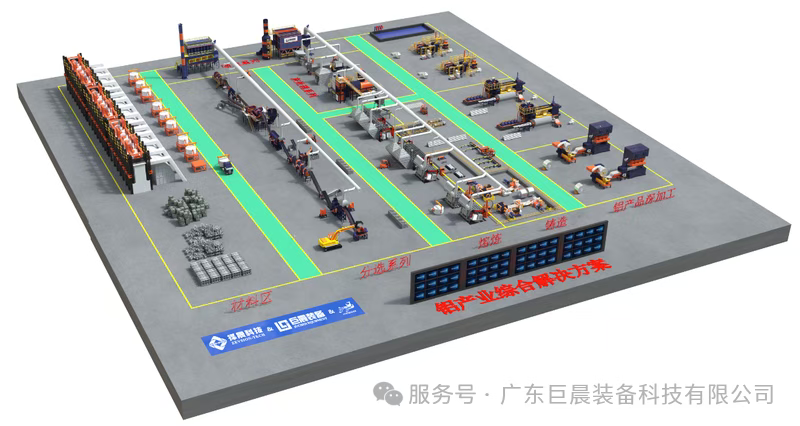 Aluminum melting reverberatory furnaces, combustion systems, preheating kilns, cold dross buckets, rotary furnaces, aluminum ingot casting machines, billet casting water table, stacking robots, screening and sorting equipment, pulse bag type dust collector, etc.
